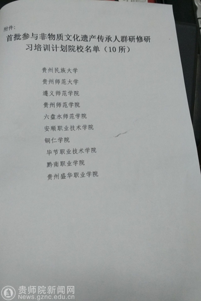 我校团委、历史与社会学院、艺术学院、职业技术学院及非物质文化遗产研究中心作为学校申报该项目的主体单位之一,充分发挥现有和潜在优势,积极参与了项目的申报工作,重点针对贵州少数民族非物质文化遗产传承人群开展各层次的教育培训工作,助推贵州地方经济社会文化发展。