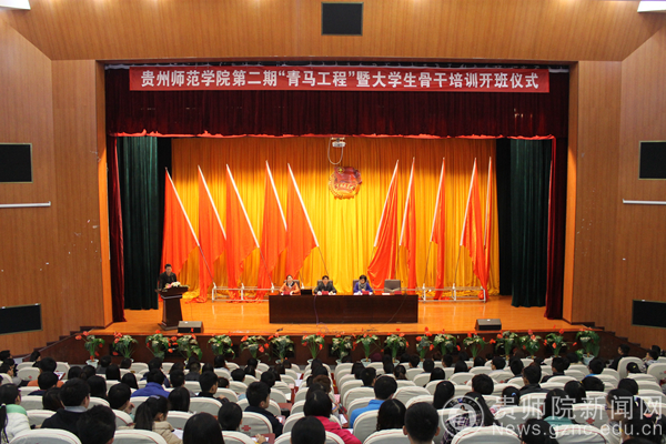 12月8日下午,我校第二期“青马工程”暨大学生骨干培训开班仪式在逸夫楼演播厅拉开帷幕。我校党委书记陈扬、党委副书记令狐彩桃、校团委书记张婷、团委副书记朱晨刚出席了本次开班仪式,参加开班仪式的还有各学院基层团委书记及362名学生干部,仪式由朱晨刚主持。