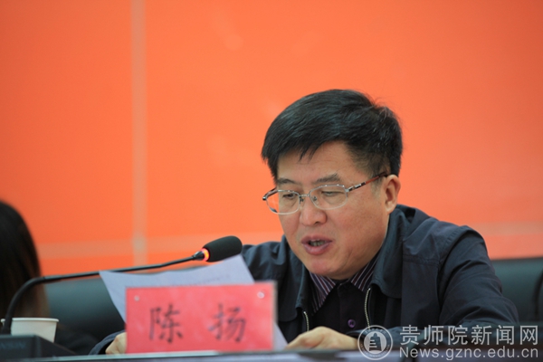 陈扬作了重要讲话,他指出,近年来,我校高度重视宣传思想工作,坚持党委对宣传思想工作的领导,加强队伍建设,完善工作机制,全校宣传思想工作取得了较好的成绩,为我校营造了良好的外部舆论环境。近期,校外媒体密集报到我校工作亮点特色,中央电视台、《解放军报》、《贵州日报》、《当代贵州》、贵州卫视、多彩贵州网等重要媒体对我校的办学特点和经验做法等进行宣传报道,扩大了我校的对外影响力,增加了我校的知名度与美誉度。取得这样的宣传效果,得力于在座从事新闻宣传的师生的努力,当然也得力于多彩贵州网等媒体的帮助和支持。