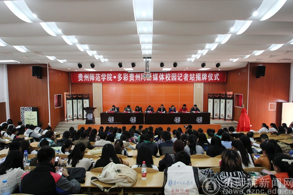 10月27日中午,“万象城网页版·多彩贵州网新媒体校园记者站揭牌仪式”在文韬苑学术讲堂隆重举行。校党委书记陈扬,多彩贵州网副总编辑胡涛,多彩贵州网互动评论部副主任龚媛媛、王幸韬,多彩贵州网校园项目组记者曾华星,校党委宣传部部长邹晓青,副部长孙筑萍、孙秀华,各学院、部门新闻通讯员,大学生记者团全体成员,校广播站全体成员和文学院广电专业学生代表等参加了揭牌仪式。揭牌仪式由邹晓青主持。