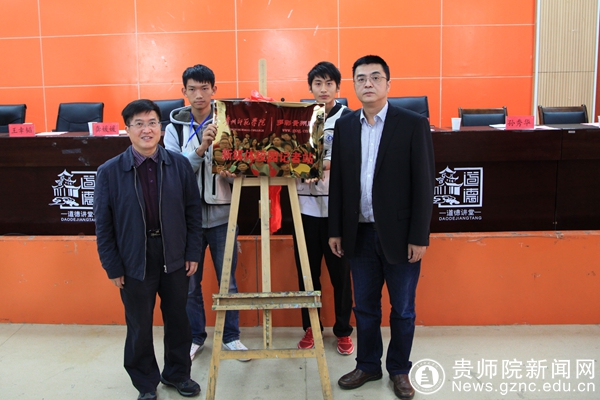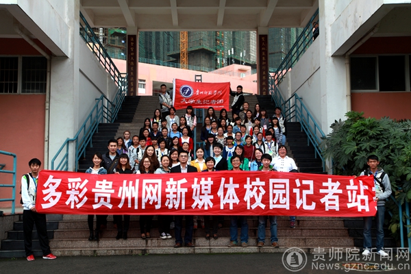 陈扬和胡涛为“万象城网页版多彩贵州网新媒体校园记者站”揭开红红的礼幔,向大家宣告:万象城网页版·多彩贵州网新媒体校园记者站正式成立!