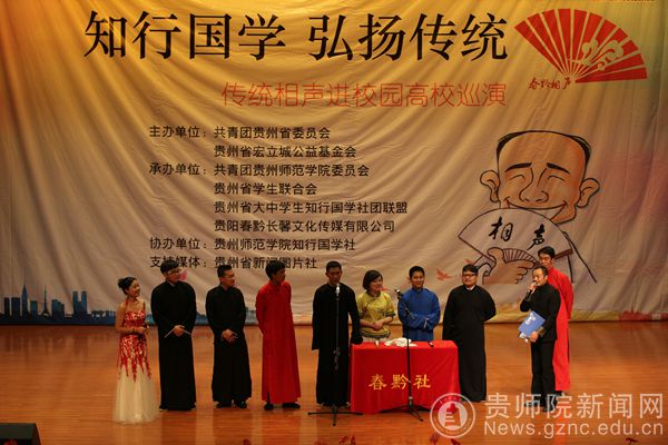 10月16日,以“知行国学 弘扬传统”为主题的传统相声表演在我校逸夫楼演播厅举行。为进一步丰富我校的精神文化生活,提高大学生的艺术修养,引领大学生弘扬先进文化和中国民族文化,校团委特承办了此次优秀传统文化进校园相声专场巡演活动。
