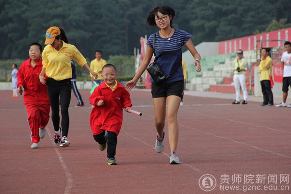 在100米短跑赛场上,每名特殊儿童在两名志愿者的照护下参赛;折返接力赛上,特殊儿童在志愿者的带领下往返跑道;传递乒乓球中,球总是从球拍上滚落掉地。尽管这些孩子往往要花费多于正常人两到三倍的时间来完成比赛,但他们在比赛中认真的态度、努力的精神与常人别无二致。