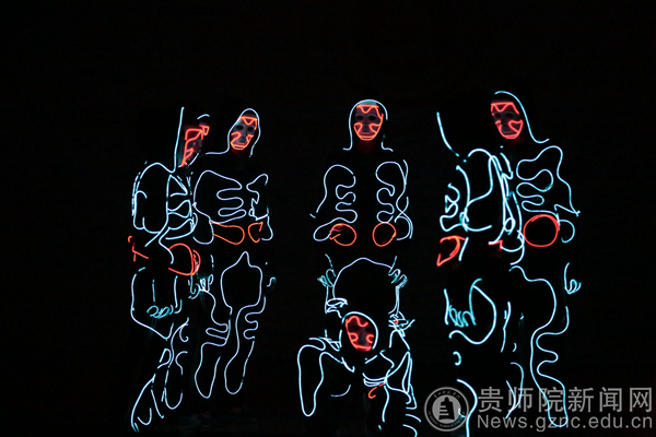 节目《智电唤醒外星人》新颖的表演形式让人眼前一亮,这个体现了物理与电子科学学院专业特点的节目,运用忽亮忽灭的LED灯效果让观众有了处于外星世界的奇妙感觉。