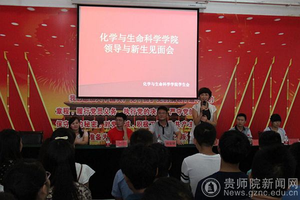 为向2014级新生介绍应该怎样规划自己的大学生活,使其更快适应大学生活,化生学院于9月4日在求真苑党员教育基地开展院领导与新生见面会。出席的院领导有学院党委书记韩宝银,院长王超英,团委书记周旭清以及各位专兼职辅导员。