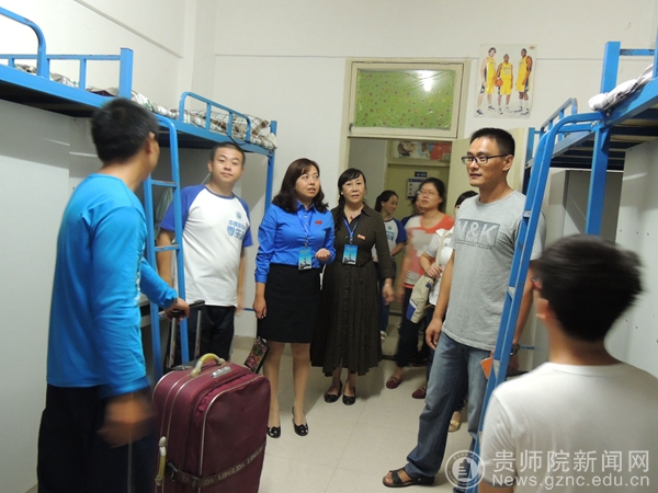 学院领导和老师每到一间寝室都与新生们进行亲切的交谈,或询问其是否适应新学校的生活环境,或与同学们“拉拉家常”,或勉励他们尽快适应新的生活环境,学会自立和合作精神。领导和老师们那和蔼可亲的态度使师生们亲密无间,让刚进校的莘莘学子们感受到了家的温暖。辅导员老师们还提醒新生们近几天学校和学院的相关安排,在规定的时间、地点参加体检、入学教育等事项。