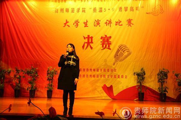 邹晓青为本次活动致辞。她说,今年是习近平同志在贵州大学“5·9”讲话三周年,总书记“5·9”讲话的核心是勉励青年学子立志成才、自强不息、知行合一、勇攀高峰,今晚各位参赛选手围绕主题展开演讲,是大学生对学习“5.9”讲话精神成果的具体体现,充分地展示现代大学生的风貌和能力。