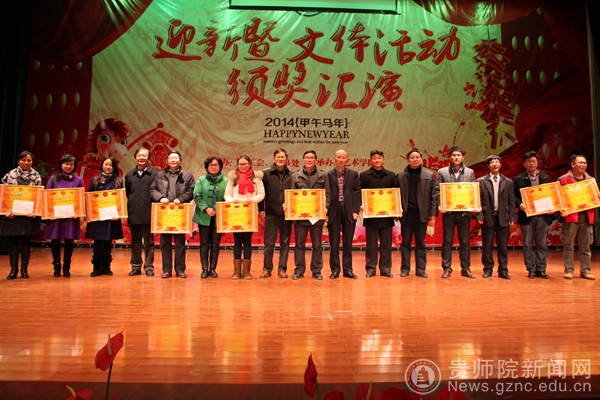 2014年1月3日下午,由校工会、人事处主办,艺术学院承办的迎新暨文体活动颁奖汇演在逸夫楼演播大厅举行。校党委书记韩卉,校党委副书记、校长李存雄,副校长汪羿,副校长张承鹄,副校长令狐荣锋,校长助理夏卫东等校领导出席并观看了汇演,观看汇演的人员还有学校副处级以上干部及2013年新进人员。