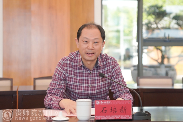 座谈会上,石培新对黔南民族幼儿师范高等专科学校一行的到来表示欢迎,并全面介绍了我校的历史沿革、学科建设、人才培养、科研创新等成果,并期待两校以既有合作为基础,拓展合作领域,携手书写贵州教育高质量发展新篇章。