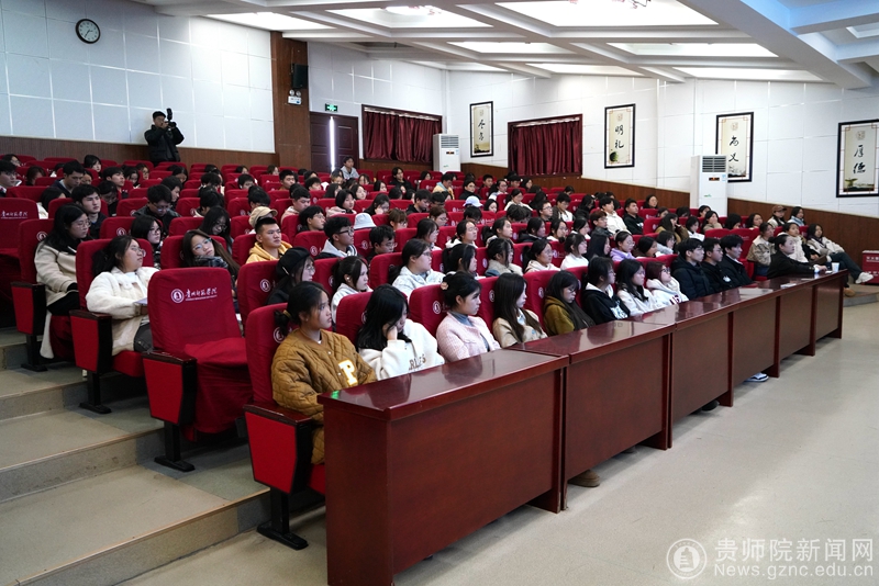本网讯 11月26日下午,我校在道德讲堂成功举办了“校友伴你行”成长讲堂第二场讲座。本次讲座由我校校友,阳明心学教育实践者、贵州文化旅游职业学院副院长袁曜主讲。原数学系系主任项昕、校团委副书记伍玲婧参加此次讲座。讲座由校党政办公室副主任兼校友办主任敖永凤主持人。