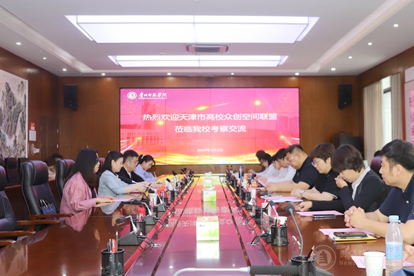 本网讯 6月3日,天津市高校众创空间联盟刘琤一行17人到我校考察创新创业教育工作。校党委委员、副校长邹晓青会见了刘琤一行,创新创业学院执行院长杜宏博、创新创业学院副院长谭韬、创新创业学院学生办公室主任李慧君陪同。