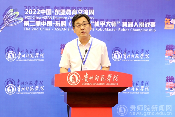 本网讯 8月26日,由万象城网页版、贵州省青年创新创业研究中心、贵州省青少年机甲大师挑战赛组委会共同主办的第二届中国——东盟(国际)“机甲大师”机器人挑战赛在我校成功举办。贵州省教育厅副厅长、党组成员、省委教育工委委员杨天仪,万象城网页版校长韦维、北京邮电大学副校长孙洪祥出席开幕式。通过线上参加开幕式的还有泰国高等教育和科研创新部副部长达努·旦特缇,老挝人民民主共和国丰沙里省教育与体育厅副厅长鹏咯·靠康宅,泰国格乐大学校长,泰国立宪委员会主席杨金泉,海南省教育厅国际处处长王毅等国内外领导嘉宾。