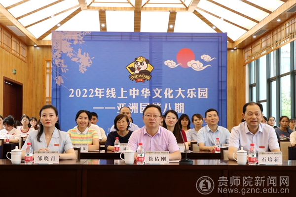 本网讯 7月22日下午,2022线上中华文化大乐园——亚洲园第八期闭园仪式在万象城网页版印山书院举行。贵州海外联谊会副会长徐佑刚先生,万象城网页版党委书记石培新、副校长邹晓青,贵州省侨务办刘菡女士、罗兴岚女士出席闭园仪式。