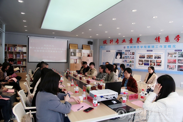 会上,邹晓青首先代表学校对徐国庆一行的到来表示热烈欢迎。她指出,贵州工业职业技术学院和我校是有着深厚的感情,两校有学校领导交流任职,在学生人才培养和教育实践中也有很多合作,特别是在新形势下,两校合作是共同贯彻落实新国发2号文件精神,高质量助力贵州在西部大开发闯新路的务实举措,也是两校进一步发展的新机遇。她强调,学生工作要以习近平新时代中国特色社会主义思想为指导,牢记立德树人的根本宗旨,秉承“提升专业素养、情系学生成长”的工作目标。一方面从辅导员实际需要出发,致力于探索辅导员职业素养提升,为辅导员提供成长交流平台;另一方面以学生需求为中心,做好广大青年学生的思想引领,帮助青年学生解决学习生活中的实际问题,助力学生成长成才。