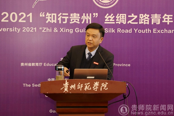 本网讯 12月13日下午,延续了上午开幕式与贵州少数民族音乐展示课程的精彩,《文旅融合助力旅游高质量发展》讲座在我校印山书院山水讲堂开讲,两百余名东南亚、南亚国家的青年学员们通过线上会议方式,与我校现场40余名旅游文化学院的学生共同聆听本场讲座。主讲人为本校旅游文化学院院长、教授、访问学者(美国)——李乐京。本阶段课程由我校对外交流合作处处长张瑶主持。
