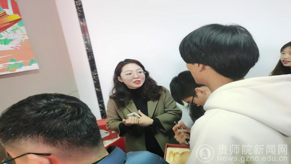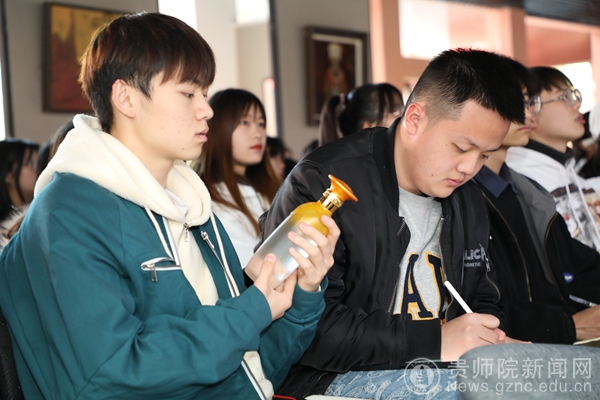 本网讯 为促进我院产教融合,协同育人的创新人才培养模式,激励师生树立“服务地方产业,助力乡村振兴”的理念,探索适应经济发展需要的应用型人才培养之路。在11月30日下午2:00,我院邀请贵州岩博酒业人民小酒销售有限公司总经理肖进春、产品设计主管徐思琪、平面设计主管刘丹等一行8人,在艺术实践工作坊参观师生展览作品,并与师生进行了互动交流。美术与设计学院院长聂森,院党委书记石含州,副院长路统宽,公共艺术系主任朱昌来、设计系主任邓鹭、邓林博士、许云老师以及产品设计专业、数字媒体艺术专业100余人参加交流会,交流会由朱昌来主持。