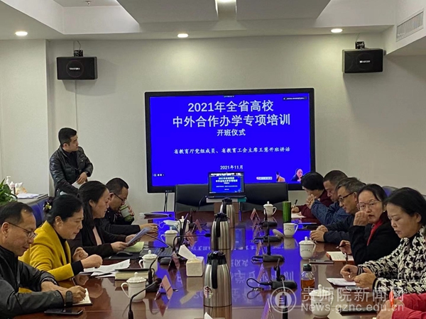 本网讯 根据省教育厅工作安排,对全省高校开展中外合作办学系统培训。我校校长韦维、对外交流合作处处长张瑶到主会场参加线下开班仪式及培训。
