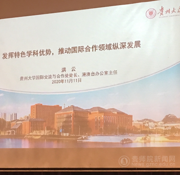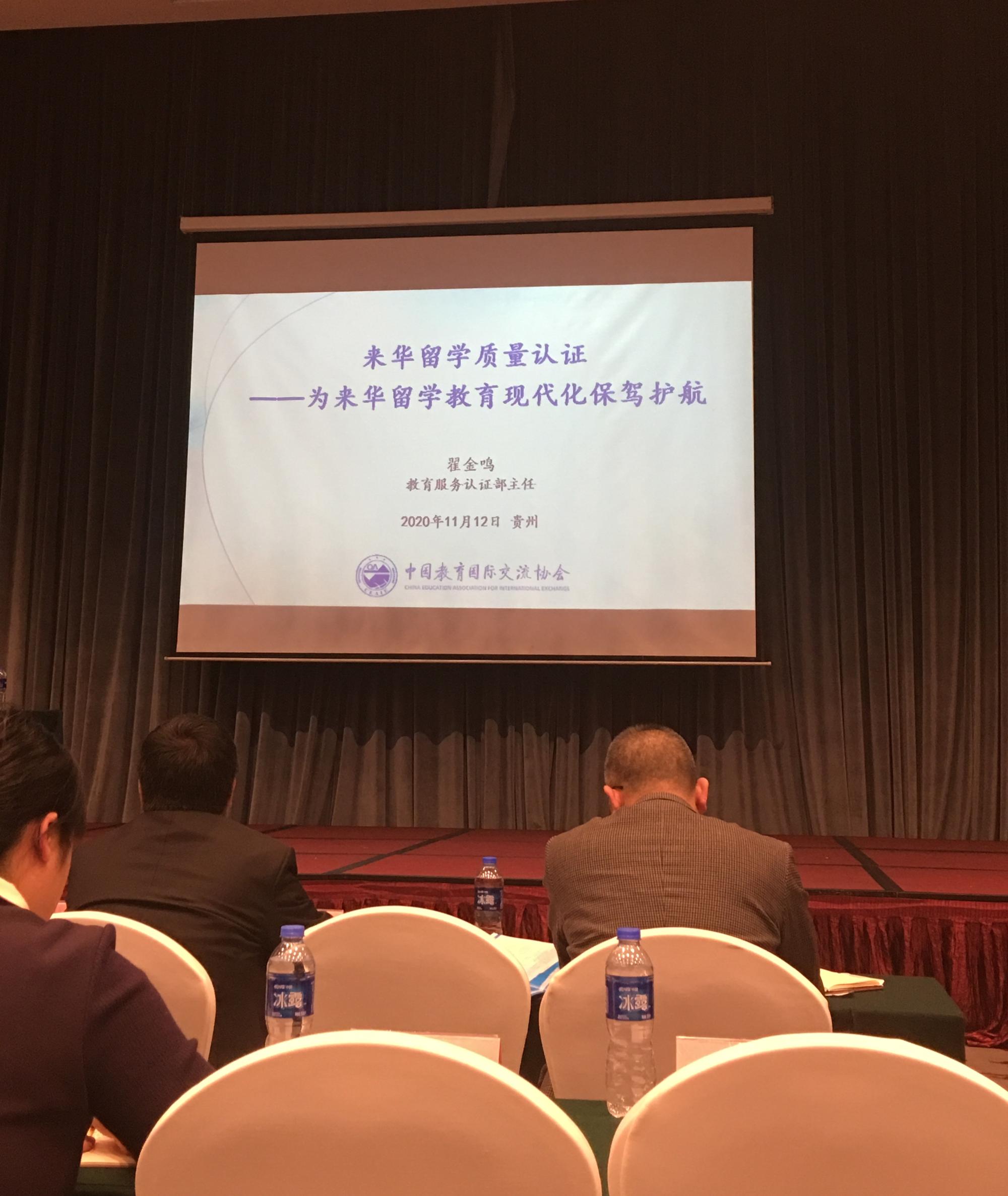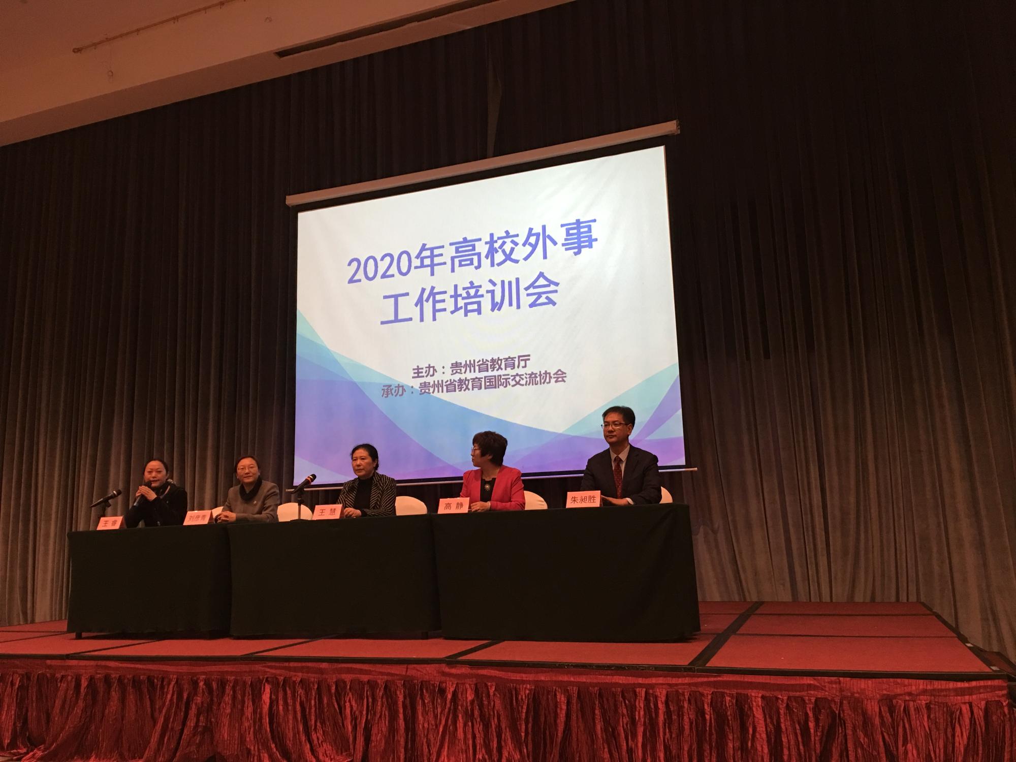 本网讯 11月10日至13日,贵州省教育厅在观山湖区盘江诺富特酒店组织召开“贵州省2020年高校外事工作培训会”。会议邀请了兰州理工大学、江苏大学、南京工业大学、北京交通大学、中国教育国际交流协会的专家教授开设讲座分享经验。全省高校和高职高专院校分管外事校领导及相关工作人员参加会议,教育厅党组成员、省教育工会主席王慧出席会议。我校党委委员、副校长邹晓青,对外交流合作处处长及部门工作人员和外国语学院教师代表参加了此次培训会。