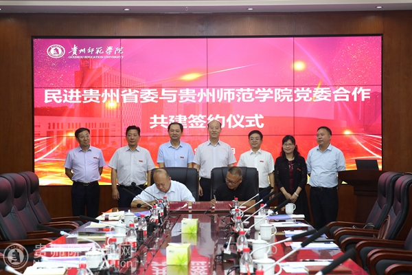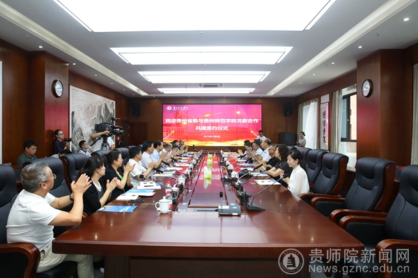 本网讯 7月8日,民进贵州省委与我校合作共建签约仪式在信息楼二楼顺利举行。贵州省政协副主席、民进中央常委、贵州省委主委左定超,民进省委专职副主委郭子仪,民进省委副主委刘大泯和我校党委、行政班子出席并共同见证了签约仪式。仪式由校党委书记石培新主持。