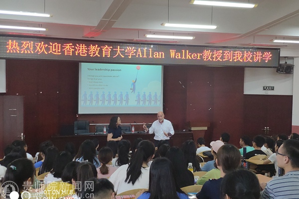 本网讯 6月26日,香港教育大学教育与人类发展学院院长、博士生导师Alan Walker教授亲临万象城网页版宁静楼学术报告厅,为教育科学院全体学生干部开设了主题为“未来学校的领导力”的讲座。此次讲座由教育科学学院刘红院长主持,香港教育大学钱海燕教授翻译。