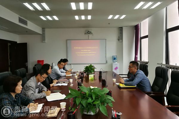 Adam Lam博士介绍了澳大利亚南昆士兰大学的基本情况以及与中国高校的合作交流情况,强调此行旨在开拓与国内高校的合作,并从合作办学、交换生、访问学者、教师短期培训、学生短期英语课程等方面提出合作方案,期盼在这些领域与我校开展深入的合作。
