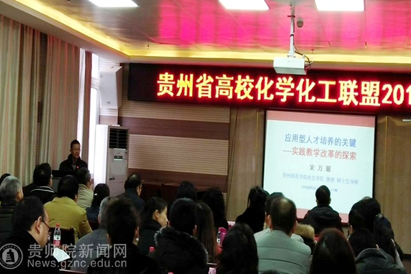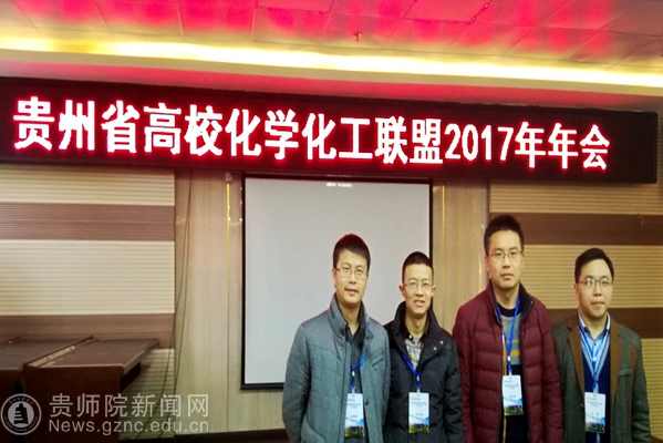 本网讯 12月7日至8日,贵州省高校化学化工联盟2017年年会(第三届)在安顺学院召开,来自省直和地州的15所高校近80余位专家学者参加。我校化生学院副院长宋万琚教授、龙攀峰副教授、孙成涛副教授及吴超老师一行4人参加本次年会。
