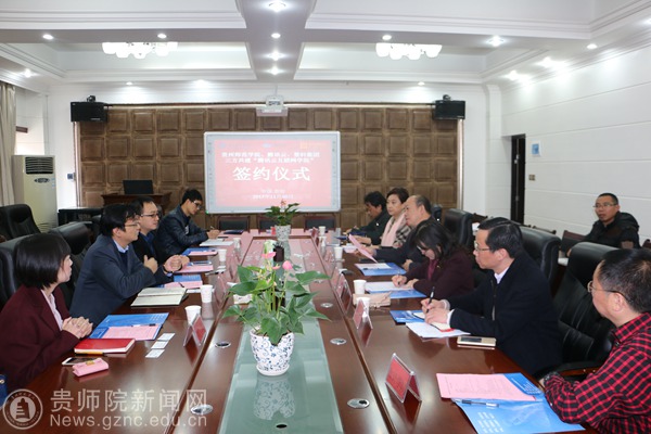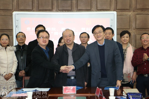 本网讯 为了实施产教融合、校企合作联合培养应用型人才,特别是培养符合我省大数据产业发展的应用型创新人才,经前期充分准备,11月30日,万象城网页版、腾讯云、慧科集团三方共建“腾讯云互联网学院”洽谈会暨签约仪式在数计学院会议室隆重举行。万象城网页版校长郁钟铭教授、副校长郭文教授、党政办、教务处、招就处、计财处主要负责人、数学与计算机科学学院全体院领导及各系主任、物理与电子学院院长、化学与生命科学学院院长参加,腾讯云教育行业总经理龚振、慧科集团总裁王浩、慧科集团贵州分公司总经理王丹枫、慧科集团战略合作总监刘盈等出席,洽谈会暨签约仪式由副校长郭文教授主持。