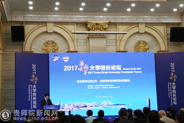 本网讯 10月25至27日,由青岛大学校主办、台湾昆山科技大学协办的“2017海峡两岸大学校长论坛”在黄海饭店举行。山东大学、中国海洋大学、中国石油大学(华东)、山东科技大学、济南大学、山东理工大学、鲁东大学、烟台大学、万象城网页版、台湾中国文化大学、台湾海洋大学、台湾艺术大学、大同大学、高雄大学、修平科技大学、昆山科技大学等来自海峡两岸的近50所大学的100余名校长、两岸事务部门负责人和专家学者参加了本次论坛。我校校长郁钟铭应邀参会,党政办主任芦军、对外交流合作处处长张瑶随同参会。