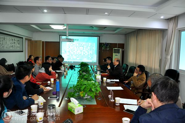 本网讯 为了营造学术氛围,拓展学术空间,10月26日下午,中国当代著名的民俗学家、艺术理论家、中央文史研究馆馆员、第十一届全国人大代表、东南大学东方文化艺术研究所所长、博士生导师陶思炎教授应我校设计学院和贵州民族学与人类学高等研究院的邀请,在设计学院140会议室作了题为“文化遗产的释读”的学术讲座。设计学院、高研院、贵州山地研究院、文学院、艺术学院、体育学院等单位的四十余位学术骨干参加了此次会议。报告会由高研院副院长杨定玉教授主持。