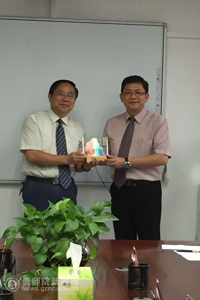 随后,宋万琚介绍了化生学院对外交流情况,他,表示学院将进一步加大开放办学步伐,鼓励学生走出贵州,也希望有机会与元培医事科大相关专业进行深入交流。肖宏治简要介绍了数计学院的专业设置及对台交流情况,她希望数计学院和元培科大相关专业教师进行互动,各学所长,达到共赢发展的目的。两位赴台交流学生在会上介绍了她们在元培医事科大学习、生活情况。