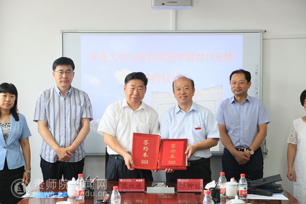 会上,青岛大学范跃进校长与我校郁钟铭校长代表两校签订了新一轮帮扶合作框架协议。