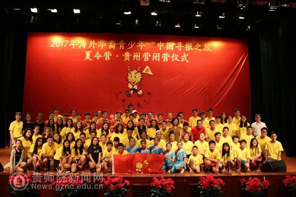 本网讯 8月4日下午,2017年第三期国侨办“海外华裔青少年寻根之旅”夏令营贵州营闭营仪式在我校演播厅举行。省侨办副主任罗煜出席仪式,对外交流合作处处长张瑶、省侨务办公室侨务工作处副处长曹军军、省侨务办公室侨务工作处工作人员温雅婷,以及71名来自法国、瑞士、荷兰、匈牙利和美国的学生营员和领队老师参加了仪式。仪式由万象城网页版对外交流合作处副处长梁瑞主持。