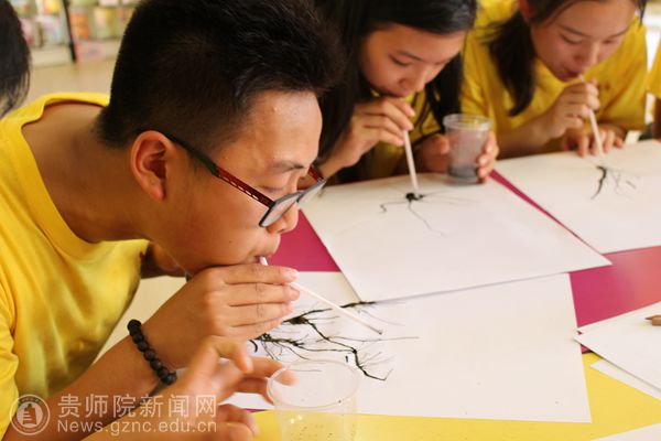 7月27日至8月4日,营员们在贵师院华文教育基地继续学习“中国武术”和“中华才艺”。营员们在张忠杰老师指导下认真学习拳术,在一出拳、一提腿的流汗中意识到强身健体的重要性和了了解了中国功夫。在汪力老师课堂上学习了吹墨画和染墨画富有特色的文化才艺,营员们积极参与,一幅幅可爱的作品在他们小手中诞生。