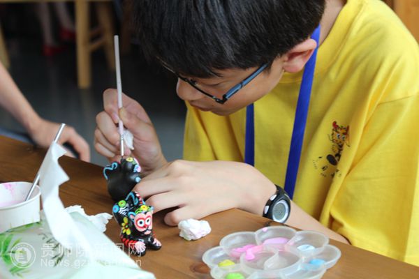 7月26日在多彩贵州文化创意园,营员们参观了贵州省非物质文化遗产博览馆,里面苗族独木龙舟、苗族蜡染、苗族刺绣、农民画和地戏等让他们惊奇之余,还亲身体验了牙舟陶、泥哨、画农民画等,感受了苗族文化的多彩魅力;晚上全体成员赴贵阳大剧院观看少数民族大型歌舞“多彩贵州风”演出,充分领略了贵州的少数民族风情,从他们鼓掌声以及洋溢着的笑脸上,不难看出对贵州少数民族风情的兴趣,对华夏文化的深深喜爱!
