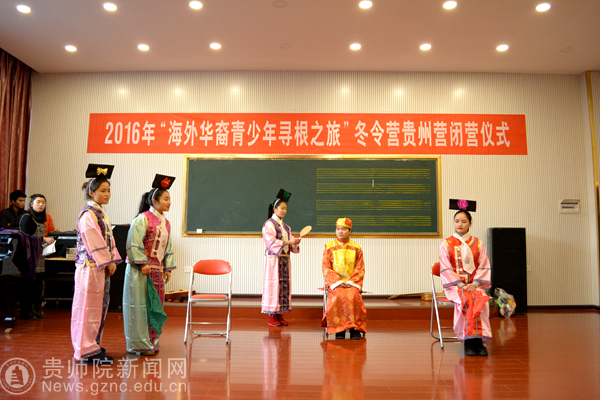 最后,受学校领导委托,张瑶代表学校给带队老师赠送礼物。我校外国语学院学生为冬令营师生献上了动感十足的舞蹈、轻松幽默的全英文戏剧、活力四射的英文歌曲及富有贵州民族特色的苗族舞蹈等,马来西亚及印尼学员们也展现了中文话剧、手语表演、大合唱、中国武术等精彩表演,还以一曲红遍全球的中国歌曲《小苹果》里的舞蹈邀请我校师生一同载歌载舞,将快乐推向高潮,这是一个大家庭离别前的狂欢,闭营仪式在欢声笑语中圆满结束。