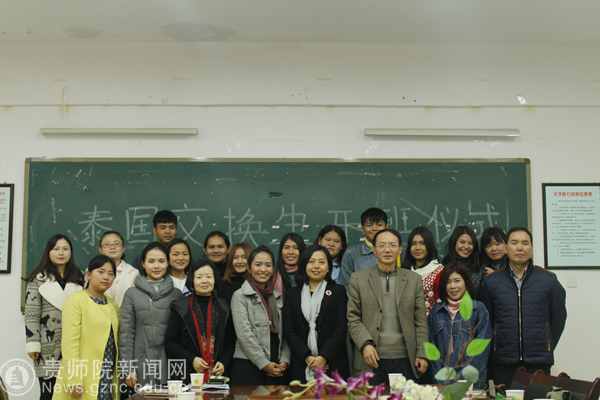 本网讯 为加强我院对外交流合作,深化与泰国黎逸皇家大学之间的合作关系,进一步提升我院汉语国际教育专业同学的能力,我院于2016年11月14日在明辨楼313会议室举行“2016届泰国交换生开班仪式”。出席此次仪式的人员有:泰国黎逸皇家大学对外交流处处长魏凤娥、对外交流合作处处长张瑶、副处长陶秀筑、文学院院长吴俊、汉语国际教育专业负责人杨荫冲、交换生班主任卓婷、万艺林老师、9名泰国交换生以及汉语国际教育专业的部分学生。