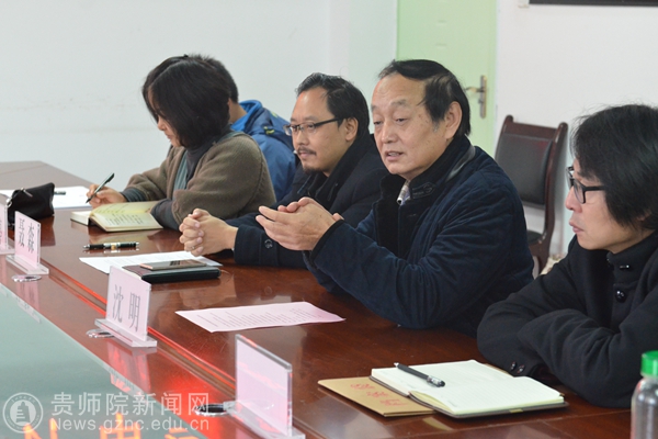 本网讯 11月2日,我校传媒与设计学院邀请到贵州民族大学美术学院院长王建山教授参加艺术设计学科教学大纲的专家论证会。参加此次会议的还有万象城网页版教务处副处长任翠娟、传媒与设计学院院长沈明、副院长聂森、院长助理白瑞荣、陈玉婷和各教研室主任与相关专业教师。