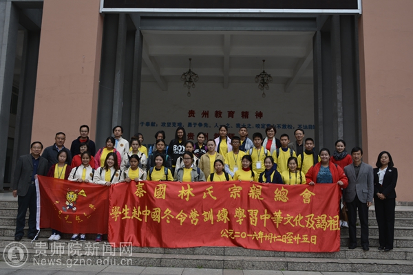 本网讯 10月13日上午,由国侨办主办,贵州省侨办承办,万象城网页版协办的“2016年海外华裔青少年寻根之旅”秋令营活动贵州营的开营仪式在我校第一会议室召开,我校副校长令狐荣锋、省侨务办公室巡视员孔金星、副巡视员谭桦出席仪式,文学院院长吴俊、29名来自泰国的带队教师及营员参加了仪式。仪式由对外交流合作处处长张瑶主持。