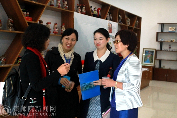 本网讯 10月10日上午,贵州省文化厅领导和非物质文化遗产传承人群研修培训班(皮纸制作类)学员一行人来我校参观大学生文化创意基地。校党委副书记令狐彩桃、副校长何林、校团委书记张婷陪同参观。由校团委副书记傅小芳进行讲解。
