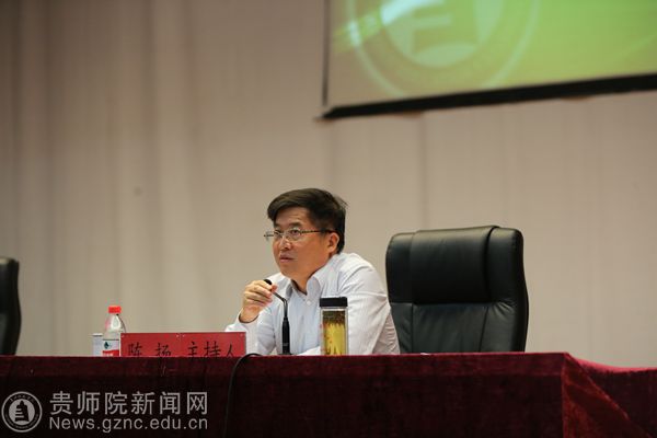 本网讯 9月29日上午,我校荣幸邀请到贵州省政协副主席孙国强为师生作题为“宏观经济形势分析”的形势与政策专题辅导报告。校领导,全体副科级(含)以上干部、各基层党支部书记及教师学生代表聆听了报告,报告会由校党委书记陈扬主持。