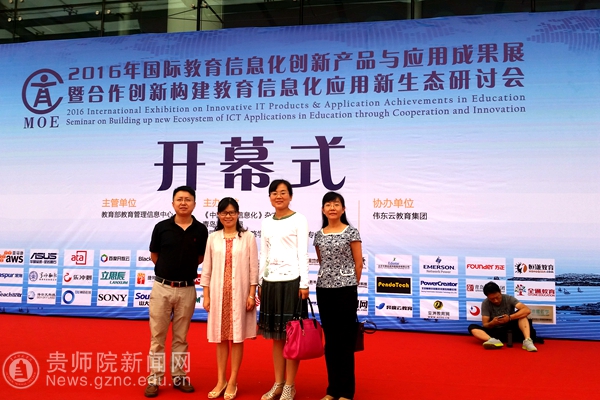 本网讯 6月22日至24日,山东青岛市举办了“2016年国际教育信息化创新产品与应用成果展”。副校长郭文应邀参加。随同人员有教务处副处长任翠娟,教育信息网络中心信息技术教研室主任周春燕和数学与计算机科学学院信息工程系主任崔忠伟。