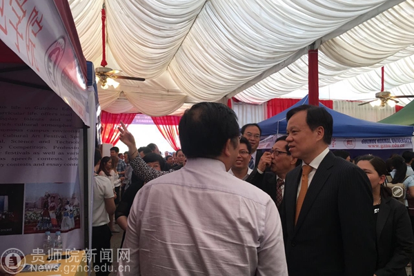 在参展过程中,贵州省委书记、省人大常委会主任陈敏尔前往我校展台巡展并了解我校布展情况,令狐荣锋对我校基本概况、留学生招生宣传和布展工作等做了如实汇报,陈敏尔听取汇报后,对我校此次教育展的工作表示肯定,并希望我校通过此次教育展能有所收获,不断吸引东南亚国家的学生来黔来我校留学,从而为我校的留学生教育工作奠定良好的基础。