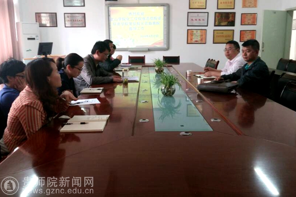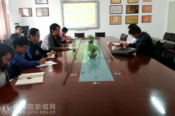 本网讯 4月27日,文山学院化工学院张志信院长、环资学院常征院长莅临我校指导工作,在宁静楼525会议室举行经验交流会。会议由学院党委书记韩宝银主持。学院党委副书记干正洋,团委书记周旭清,办公室副主任张婷婷,教学秘书赵政,实验室副主任周进康、钟娟等参加了此次会议。