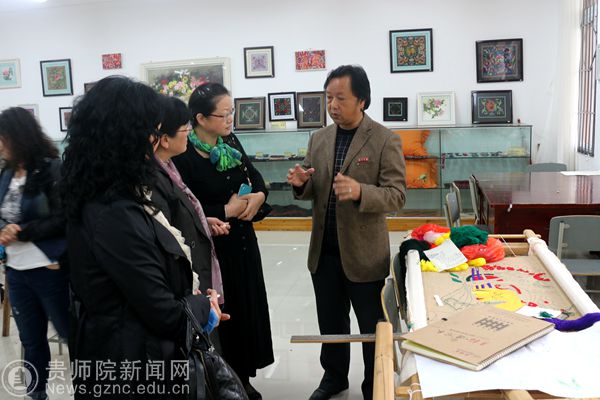 期间,双方就非物质文化遗产传承人群研修研习培训基地建设思路及实施路径,非物质文化遗产项目展示馆建设方案,“非遗进高校”实施方法等方面的问题进行了深度座谈和交流。随后,在张院长和李书记的引导和介绍下,我校非遗研究中心人员认真考查了凯里学院艺术学院非物质文化遗产传承人群研修研习培训基地建设状况,重点参观了解了学院银饰实训室、蜡染实训室、刺绣实训室及陶艺实训室的设备配置及运行机制,详细录制了该校非物质文化遗产项目展示馆的运作状况。