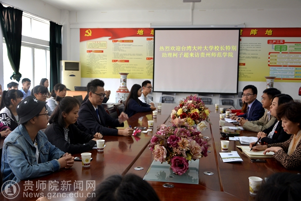 会上,张瑶对嘉宾来黔表示热烈欢迎,简述了贵州省和贵阳市的地理位置和环境优势,并从我校历史沿革、学校规模、专业建设、学科特色等方面概括了我校总体情况,介绍了对外交流合作处在国际交流及对台交流工作方面的情况。李乐京从学院专业的资源配置、构建、一体两翼的学校办学定位等方面向嘉宾做了介绍。随后柯子超介绍了台湾大叶大学的基本情况,并对有意愿赴台湾交流学生的问题作了解答。王超英及朱继伟与嘉宾探讨了两校学生交流相关专业、教师与学术交流途径、中外合作办学等问题。最后,我校赴台湾大叶大学的四名学生讲述了赴台学习交流的体会和感悟。对外交流合作处领导及各学院院长一致表示将努力做好或协助做好台湾各项交流工作,进一步扩大学校对外开放,增进两岸及两校交流合作的深度与广度。争取在学生交流、教师交流、合作办学、科研学术交流等各方面有新的突破。