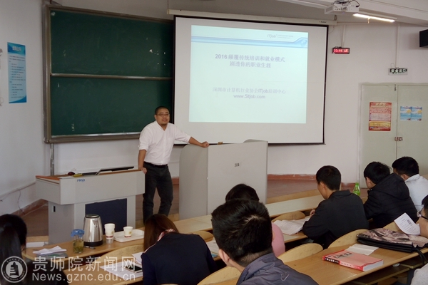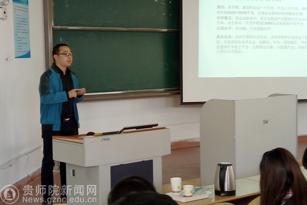 周筑文首先向大家介绍公司来人,勉励同学们积极参加企业培训,机会来之不易,要认真寻找自己的人生道路,认真聆听来自企业的信息。沈劼首先为大家简单介绍公司信息,做为一名媒体行业的老兵,资深的营销人,幽默风趣的用个人创业经历讲述现代社会职场的不易,介绍信息时代互联网行业在职场的信息,通过热门职业与落败职业的比较,说明互联网的热门发展。公司将企业培训深入到大学校园,利用学校与企业两种不同的教育环境和教育资源,采取课堂教学与学生参加企业实践有机结合的方式,更好的培养即将就业大学生。紧接着,远标ITjob公司李申刚经理介绍了远标公司具体培训计划,以及各种费用,着重介绍公司具有真实的项目,向同学们展示了结果。根据深圳政府与深圳计算机协会人才服务中心开通的绿色通道,实现学生零学费培训。并且物电学院与该公司已于2015年签订了校企联合办学的协议,今年已经有3名2012级同学通过培训已在企业工作,更加提高该公司的可信度。