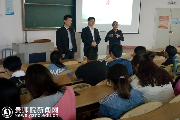 宣讲会由周筑文主持,他介绍了来作宣讲动员会工作的嘉宾并鼓励同学们大三毕业在即,要认真对待就业机会,作为非师范专业学生要积极参加企业在校举办的各种培训。陈刚就上善云图公司情况给同学们做讲解,介绍公司发展及产品。上善云图信息科技公司主要做APP开发、软件开发、硬件开发项目,成为集团的智慧输出机构,上善构建高科技公司为背景的人才招聘市场,打开产业链的末端。并且分析目前应届毕业生的就业情况,让大学生认清毕业不是终点,而是起点。