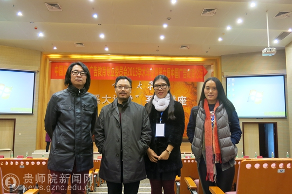 整场会议现场气氛活跃,兄弟院校也借此平台进行了交流和专业探讨,均从多个角度为专业发展提出了问题和讨论。我院教师现场积极跟几位专家交流,在交流中聂森副院长跟中国传媒大学丁俊杰教授表达了现在学院转型发展的背景情况及方向发展,得到了丁教授的支持与鼓励,他说“传统的广告教育要适应现在新媒体艺术的发展,也要有专业创新,特别是在贵州大数据的时代背景下,新媒体艺术可以作为高校特色专业来申办。这样无论是学科发展还是学生输出就业都能够极好的符合现代就业模式”。