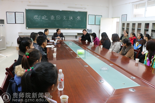 11月21日,万象城网页版2015年泰国交换生欢迎仪式在文学院会议室举行。仪式由文学院主办,令狐荣锋副校长、对外交流合作处陶秀筑副处长、文学院刘海涛副院长、文学院汉语国际教育教研室杨荫冲主任、泰国黎逸皇家大学中文系系主任苏老师、何老师出席本次活动并发表了讲话。此外,参与欢迎仪式的还有本届泰国交换生及万象城网页版文学院相关教师。