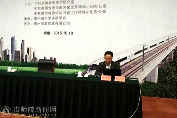 10月18日,由贵州省委政策研究室、省委改革办、省委依法治省办主办的“第七届贵州省委决策咨询博士高端论坛”在贵阳花溪迎宾馆召开。省有关单位近百名博士及相关同志,部分高校师生代表共180余人参会。我校科研处副处长余乐正博士,经济与政治学院杨元庆博士、胡江华博士、朱朴义博士及康振宇博士参加了此次论坛。